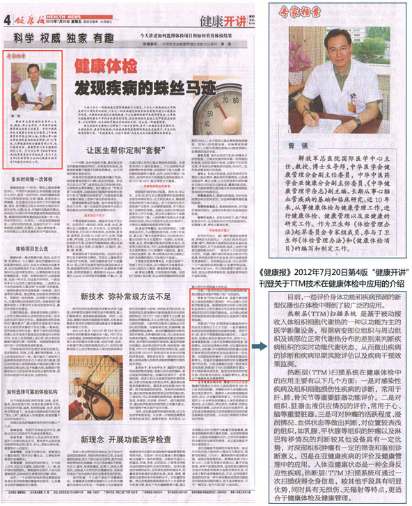 2012年7月20日第4版《健康報》“健康開講” 刊登關(guān)于TTM技術(shù)在健康體檢中應(yīng)用的介紹